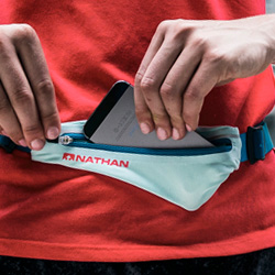 Carry hydration and essentials all while keeping your hands free. The TrailMix Plus Hydration Belt comes with two 10oz flasks, a zippered pocket, a quick-access pocket, and shock cords to hold even more.